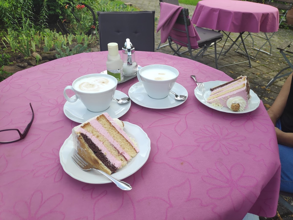As you step inside, you are greeted by a cozy atmosphere adorned with antique furnishings that tell stories of yesteryears. The rustic decor creates a homey vibe, inviting you to linger a little longer. The outdoor Biergarten offers a serene retreat where you can enjoy your treats surrounded by the lush greenery of the countryside.